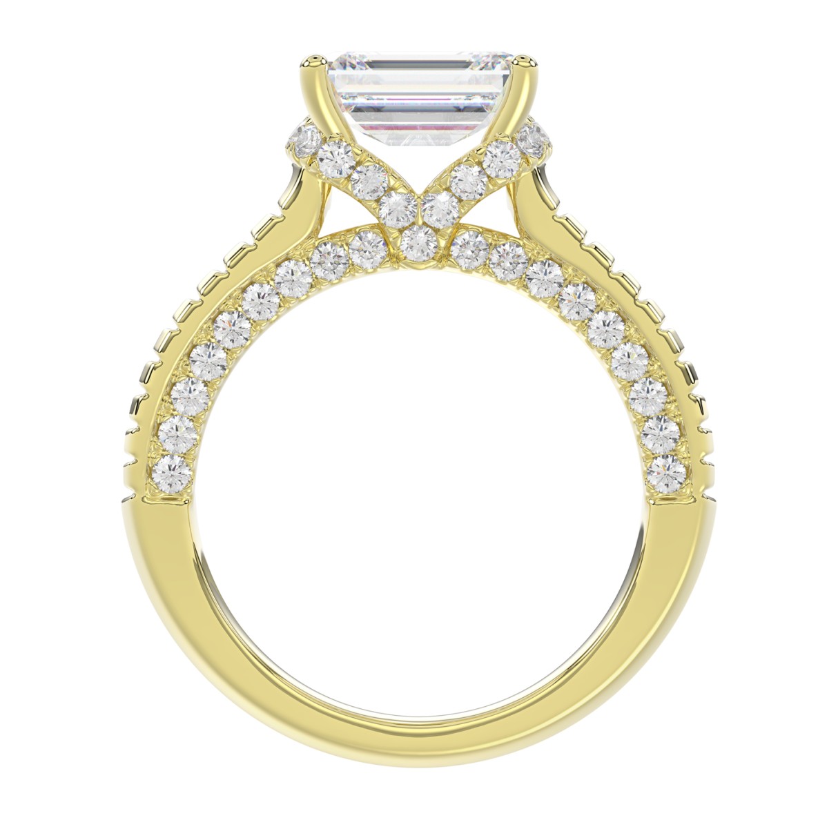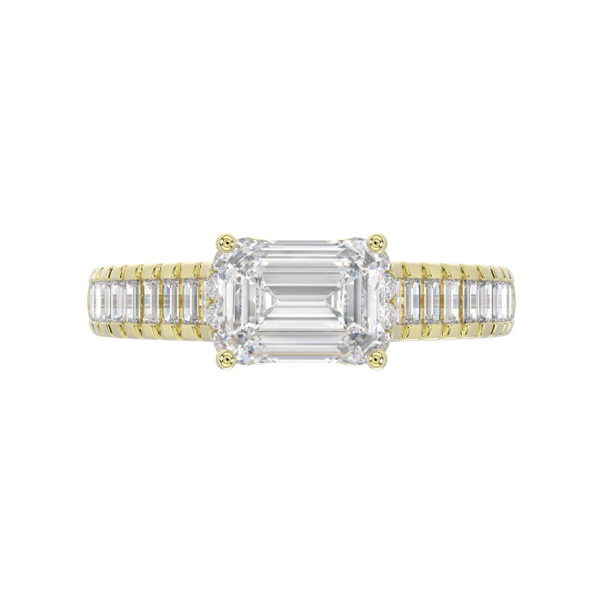 LADIES RING 3CT ROUND/EMERALD/BAGUETTE DIAMOND 14K YELLOW GOLD (CENTER STONE EMERALD DIAMOND 2.00CT)