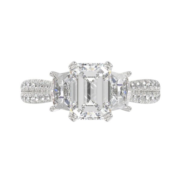 LADIES RING 3CT ROUND/EMERALD/TRAPEZOID DIAMOND 14K ROSE GOLD (CENTER STONE EMERALD DIAMOND 2CT) $2,949.99