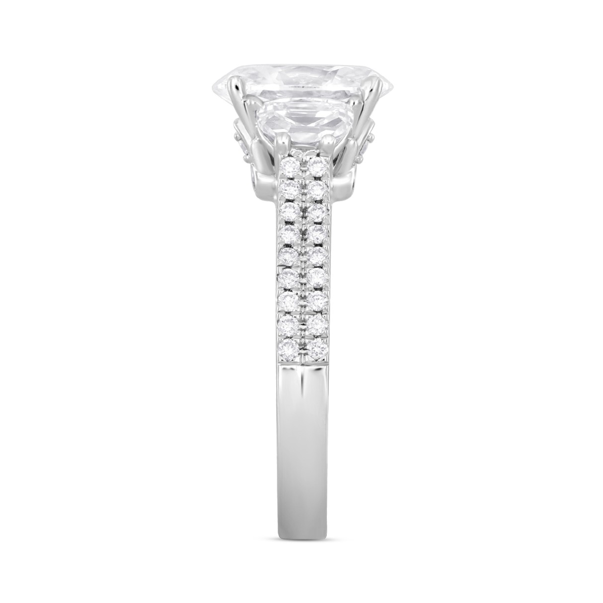 LADIES RING 3CT ROUND/OVAL/HALF MOON DIAMOND 14K WHITE GOLD (CENTER STONE OVAL DIAMOND 2CT )