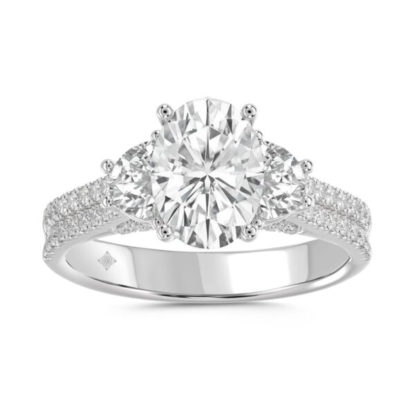 Home Rings LADIES RING 3CT ROUND/OVAL/HALF MOON DIAMOND 14K WHITE GOLD (CENTER STONE OVAL DIAMOND 2CT )