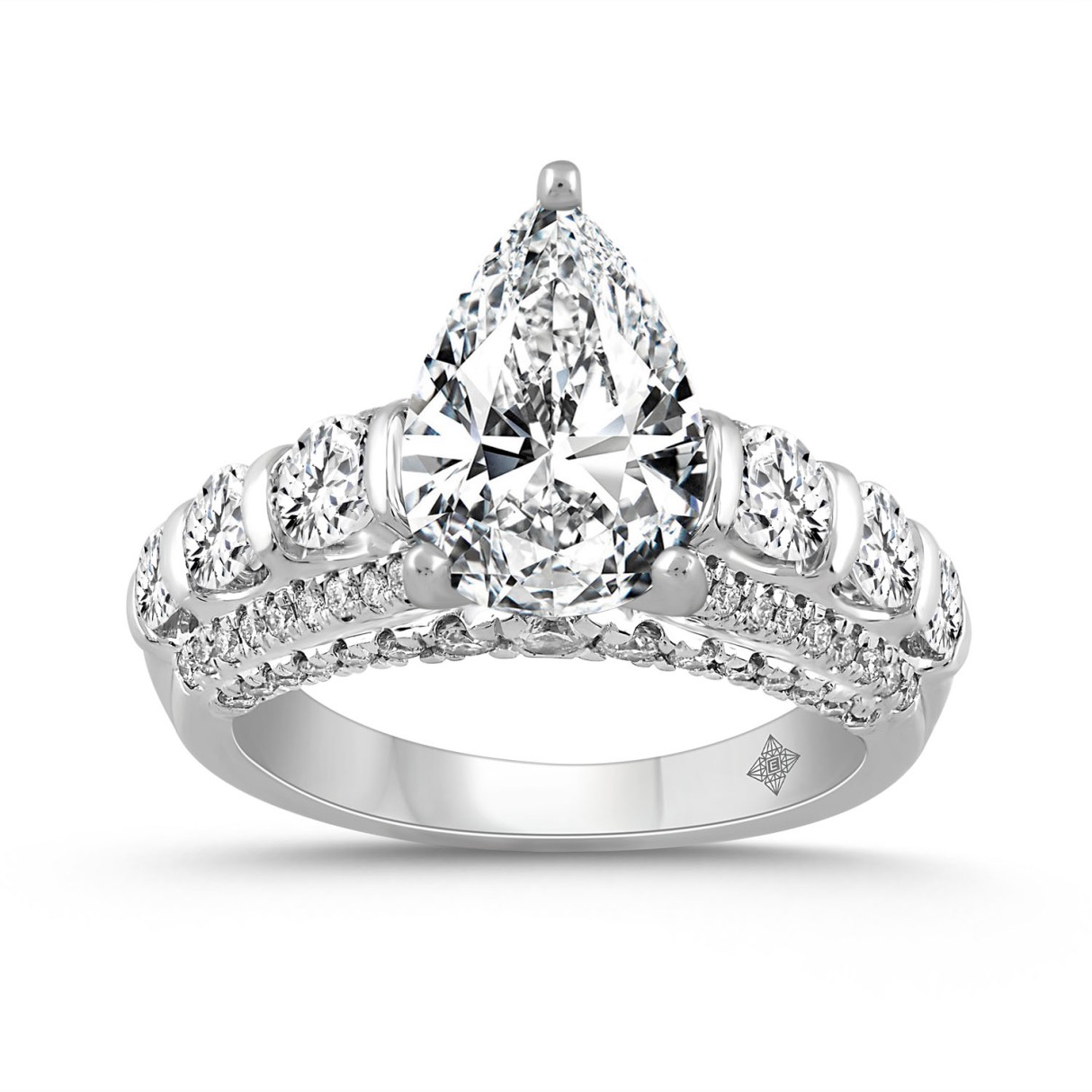 LADIES RING 4 1/2CT ROUND/PEAR DIAMOND 14K WHITE GOLD (CENTER STONE PEAR DIAMOND 3CT )