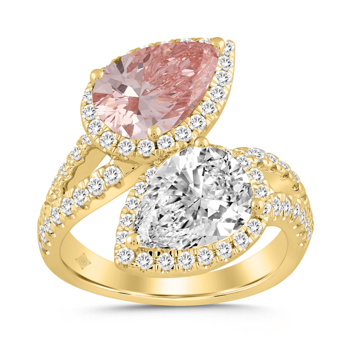 LADIES RING 4 3/4CT ROUND/PEAR DIAMOND 14K YELLOW GOLD (CENTER STONE PEAR DIAMOND 2CT )