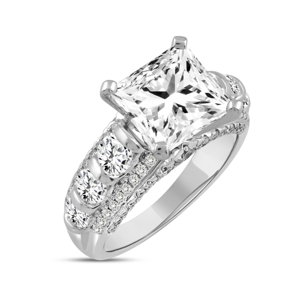 LADIES RING 5 1/2CT ROUND/PRINCESS DIAMOND 14K WHITE GOLD (CENTER STONE PRINCESS DIAMOND 4CT )