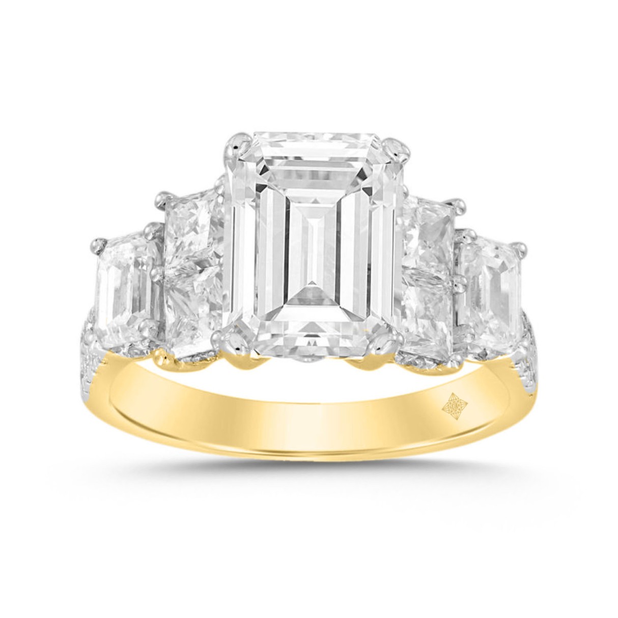 LADIES RING 5CT ROUND/PRINCESS/EMERALD DIAMOND 14K YELLOW GOLD (CENTER STONE EMERALD DIAMOND 3CT )