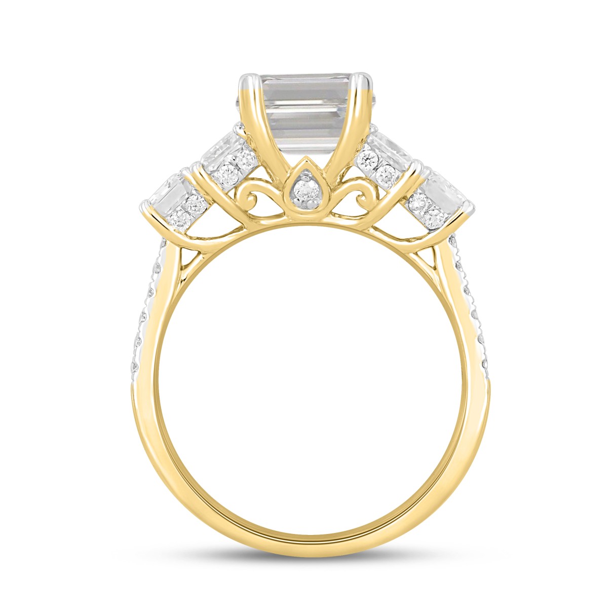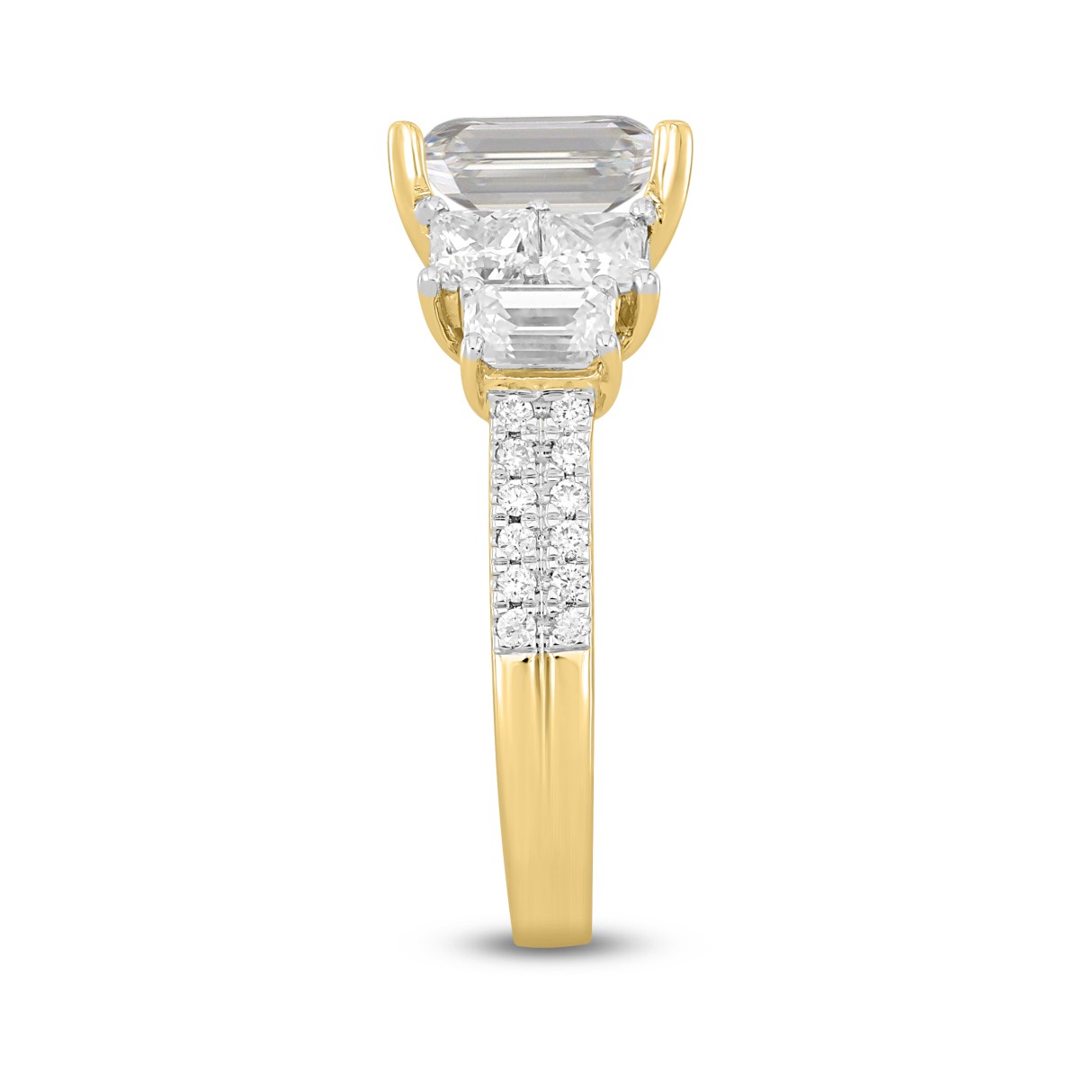 LADIES RING 5CT ROUND/PRINCESS/EMERALD DIAMOND 14K YELLOW GOLD (CENTER STONE EMERALD DIAMOND 3CT )