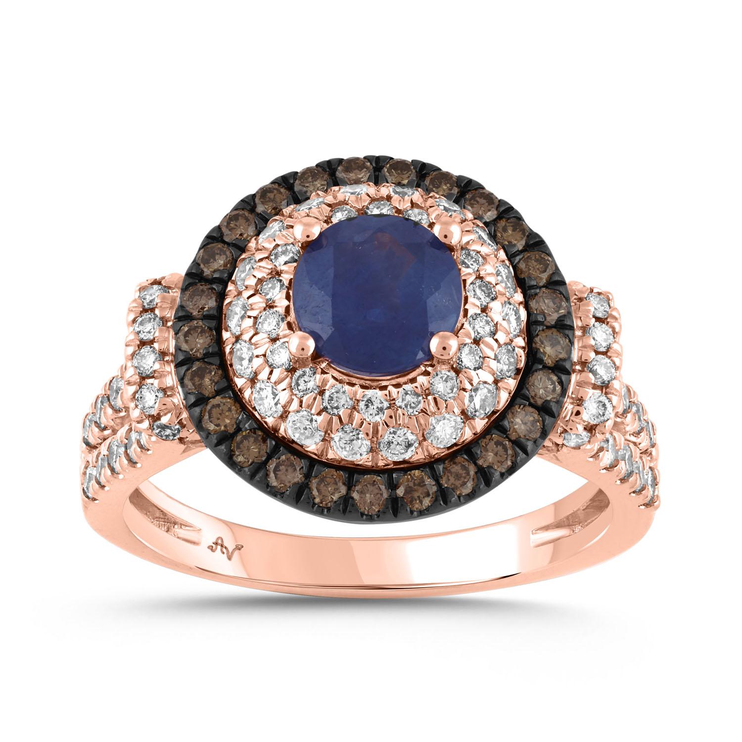 LADIES RING (CTR-SAP-1 2.00CT ROUND/SAPPHIRE/DARK BROWN DIAMOND 14K ROSE GOLD (CENTER STONE ROUND SAPPHIRE-1.00CT)