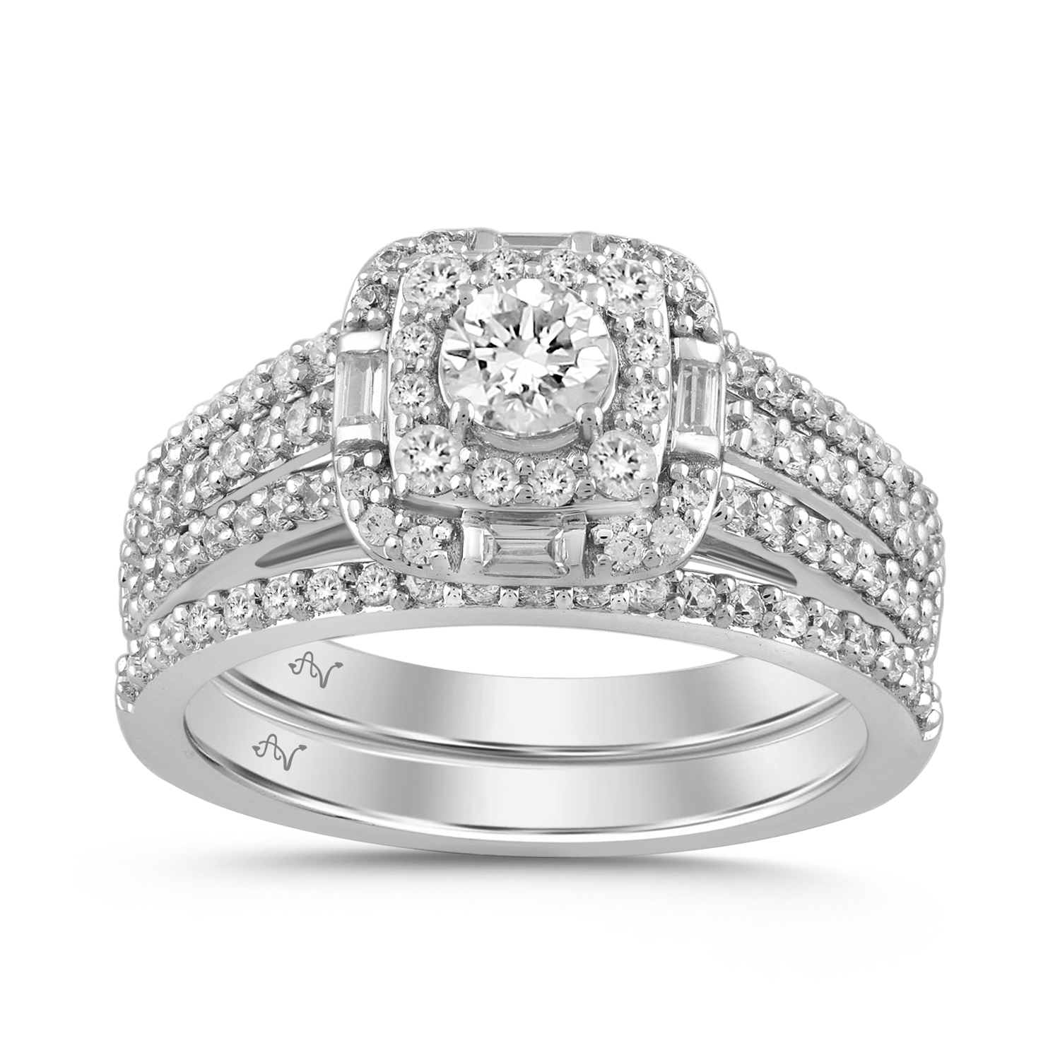 LADIES SEMI MOUNT BRIDAL RING 1.00CT ROUND/BAGUETTE DIAMOND 14K WHITE GOLD (CENTER STONE 0.30CT ROUND DIAMOND)