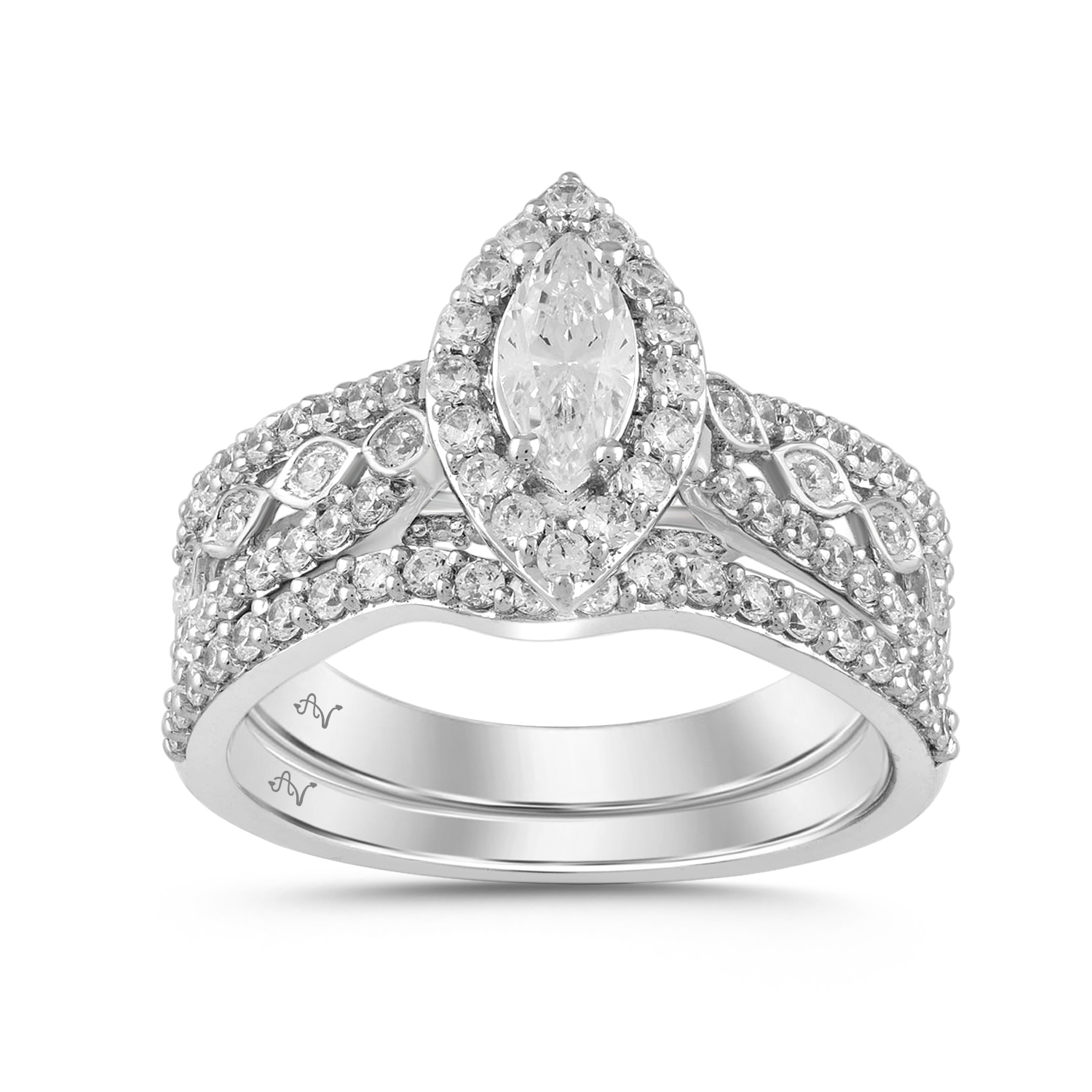 LADIES SEMI MOUNT BRIDAL RING 1.00CT ROUND/MARQUISE DIAMOND 14K WHITE GOLD (CENTER STONE 0.30CT MARQUISE DIAMOND)
