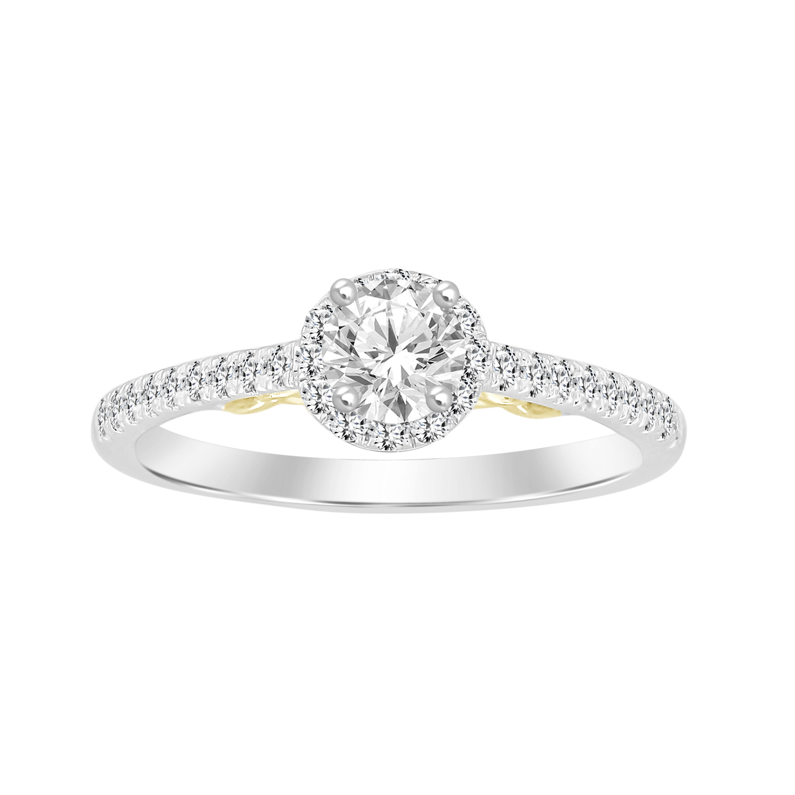 LADIES SEMI MOUNT BRIDAL SET 0.50CT ROUND DIAMOND 14K WHITE/YELLOW GOLD (CENTER STONE 0.25 CT ROUND DIAMOND)