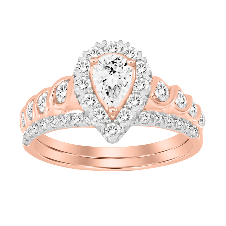 LADIES SEMI MOUNT BRIDAL SET 0.70CT ROUND/PEAR DIAMOND 14K ROSE GOLD (CENTER STONE 0.30 CT PEAR DIAMOND)