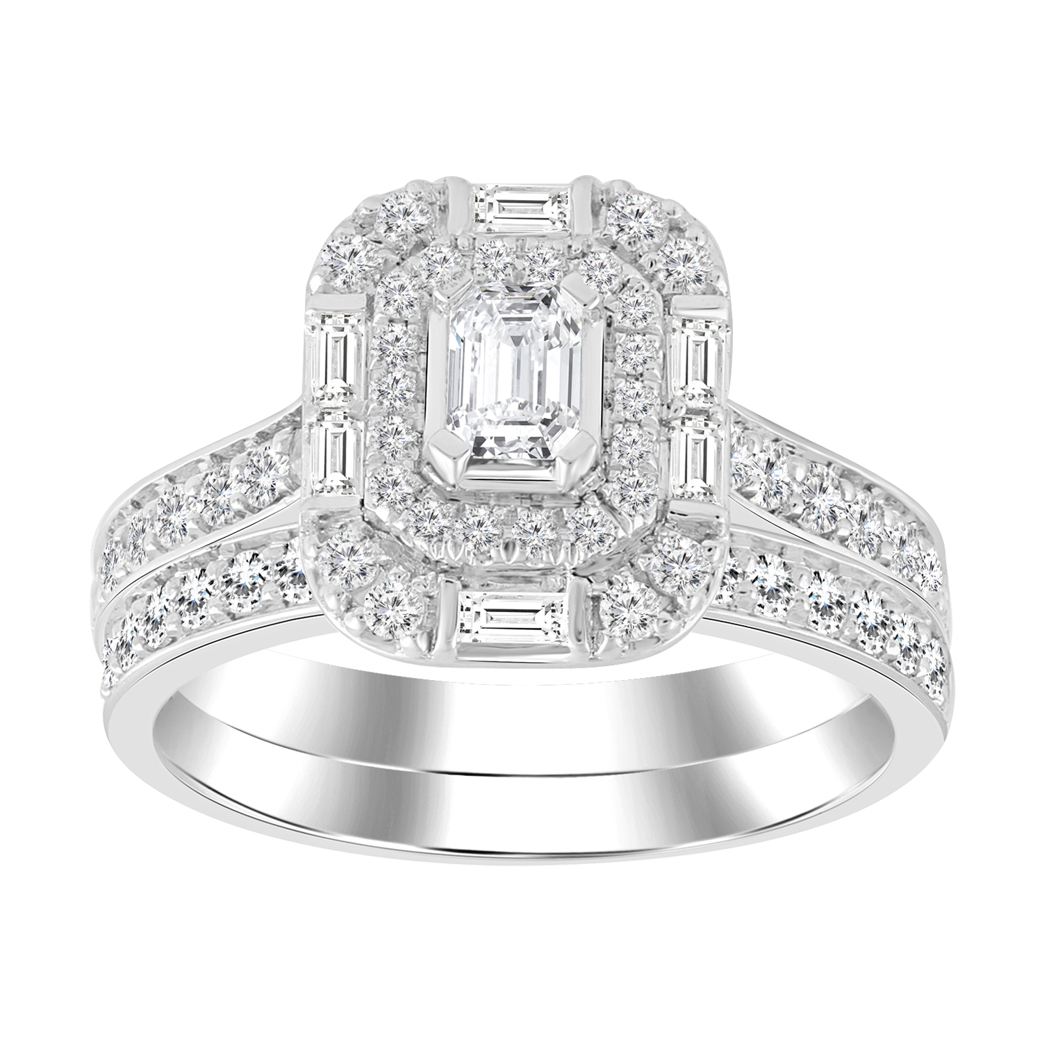 LADIES SEMI MOUNT BRIDAL SET 0.75CT ROUND DIAMOND EMERALD DIAMOND 14K WHITE GOLD(SI QUALITY) (CENTER STONE 0.25 CT EMERALD DIAMOND)