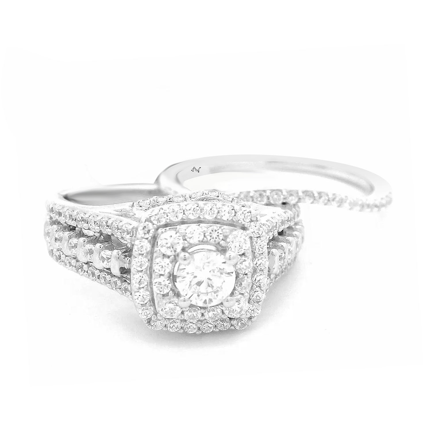 LADIES SEMI MOUNT BRIDAL SET 1.00CT ROUND DIAMOND 14K WHITE GOLD (CENTER STONE 0.25CT ROUND DIAMOND)