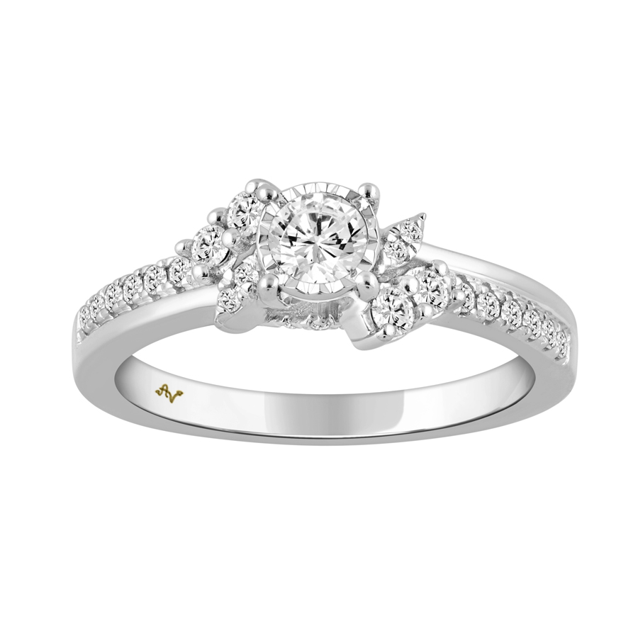 LADIES SEMI MOUNT RING 0.50CT ROUND DIAMOND 14K WHITE GOLD (CENTER STONE ROUND DIAMOND-0.25CT)