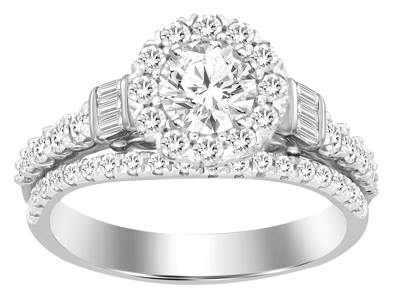 LADIES SEMI MOUNT RING 0.55CT ROUND/BAGUETTE DIAMOND 14K WHITE GOLD (CENTER STONE 0.30 CT ROUND DIAMOND)