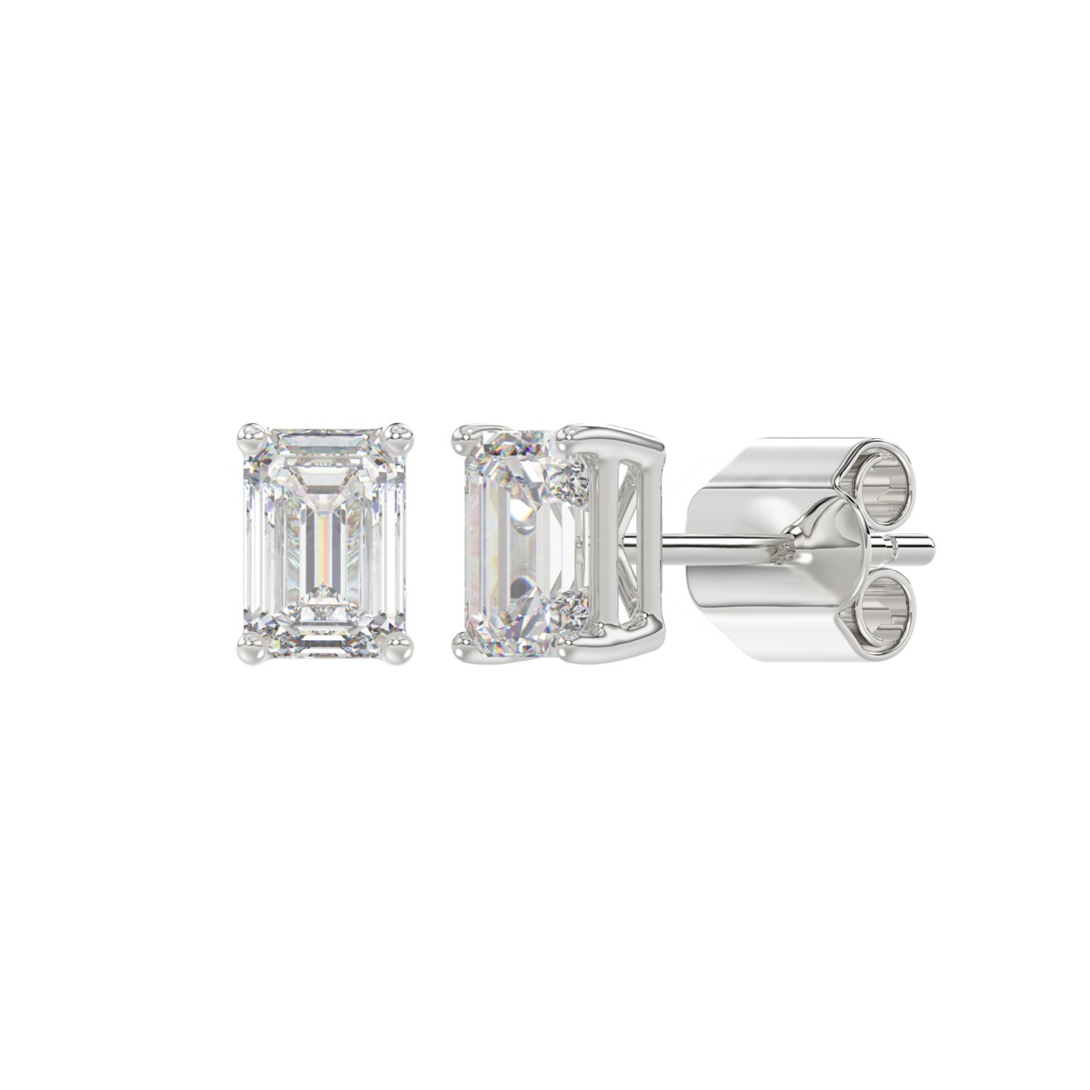 LADIES SOLITAIRE EARRINGS 1 1/2CT EMERALD DIAMOND 14K WHITE GOLD
