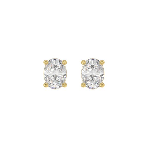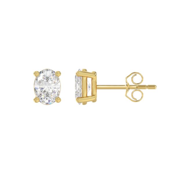 LADIES SOLITAIRE EARRINGS 1 1/2CT OVAL DIAMOND 14K YELLOW GOLD