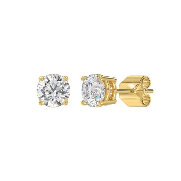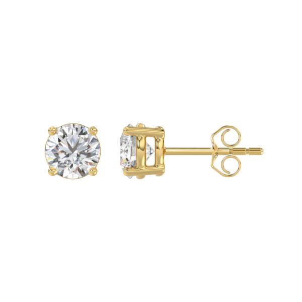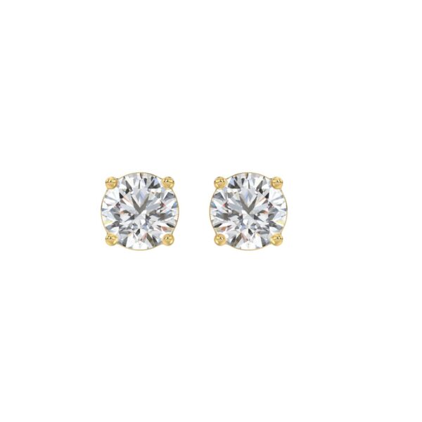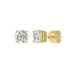 LADIES SOLITAIRE EARRINGS 1 1/3CT ROUND DIAMOND 14K YELLOW GOLD