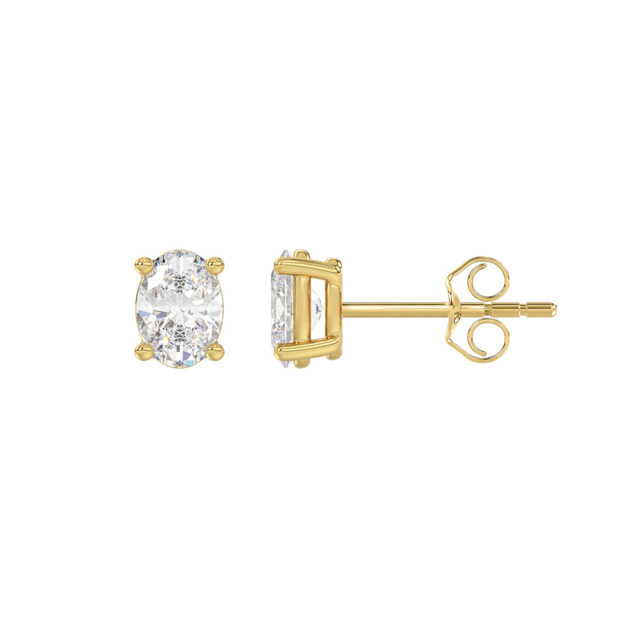 LADIES SOLITAIRE EARRINGS 1CT OVAL DIAMOND 14K YELLOW GOLD