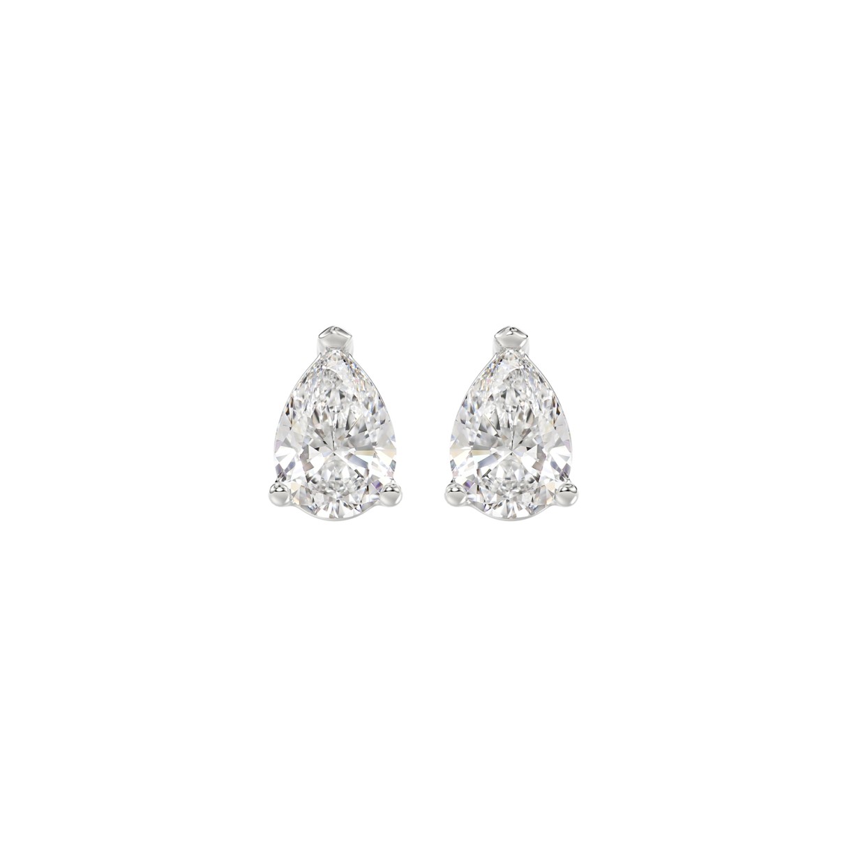 LADIES SOLITAIRE EARRINGS 1CT PEAR DIAMOND 14K WHITE GOLD