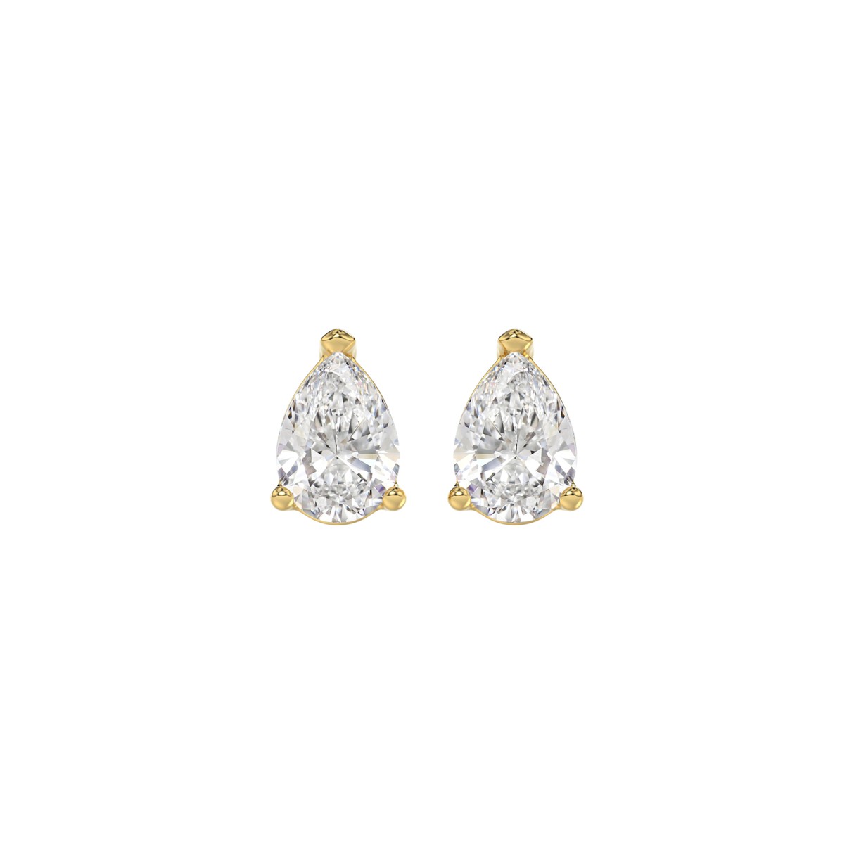 LADIES SOLITAIRE EARRINGS 1CT PEAR DIAMOND 14K YELLOW GOLD