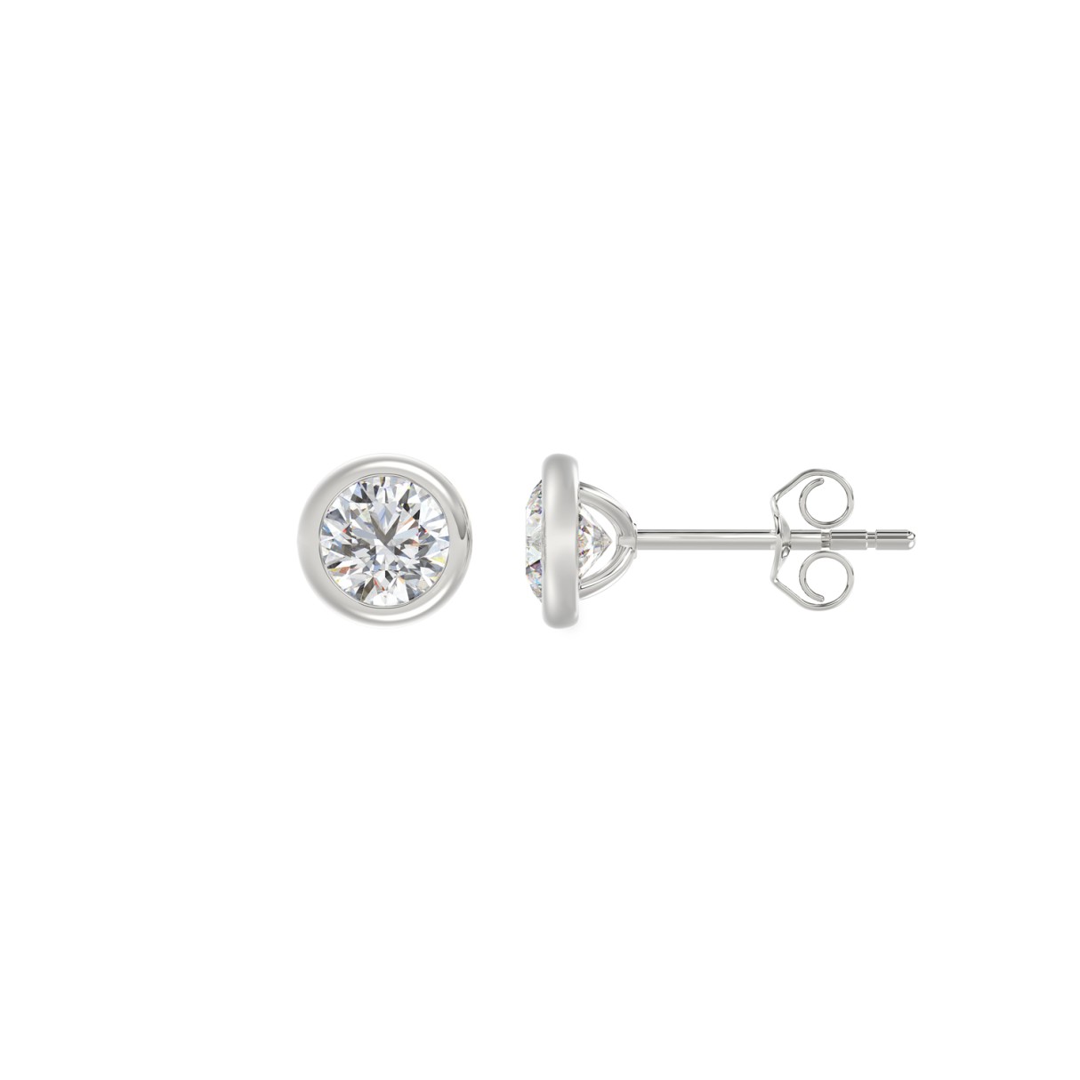 LADIES SOLITAIRE EARRINGS 1CT ROUND DIAMOND 14K WHITE GOLD