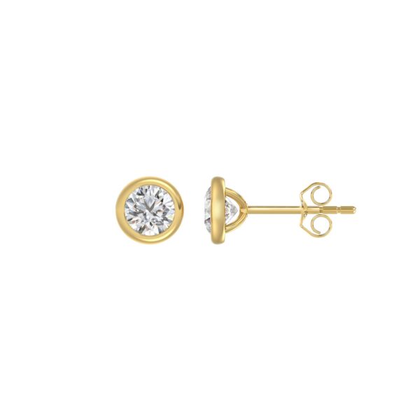 LADIES SOLITAIRE EARRINGS 1CT ROUND DIAMOND 14K YELLOW GOLD