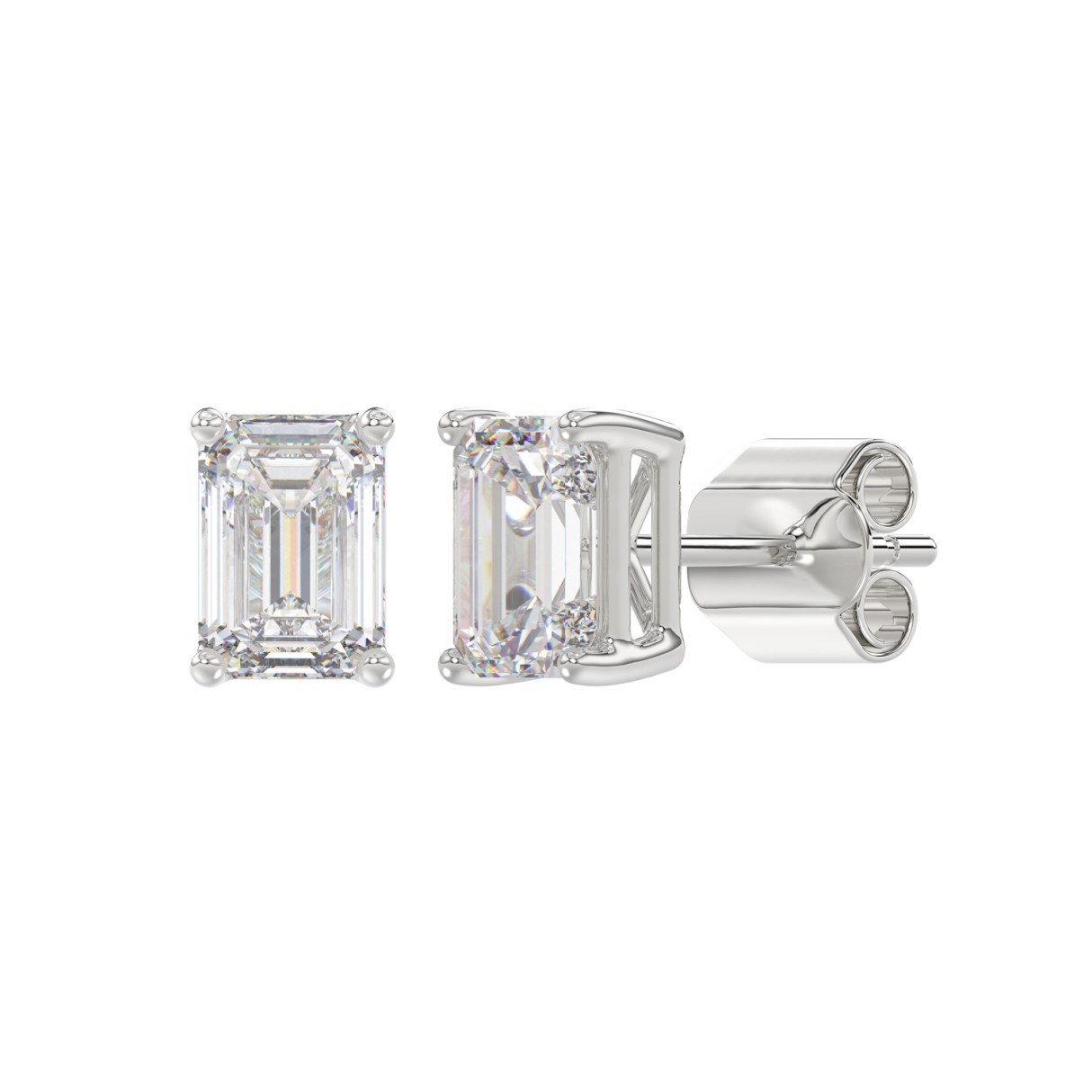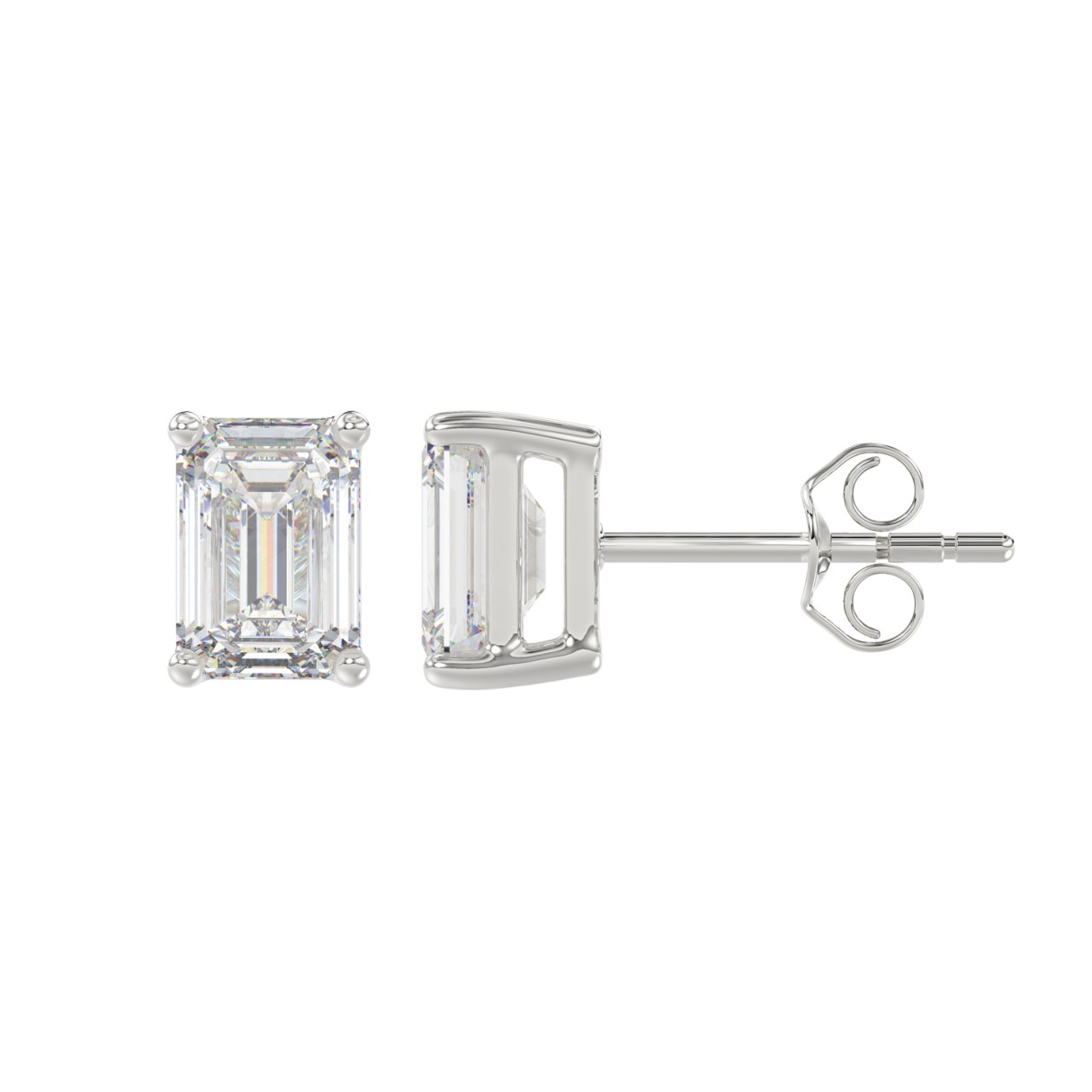 LADIES SOLITAIRE EARRINGS 2 1/2CT EMERALD DIAMOND 14K WHITE GOLD