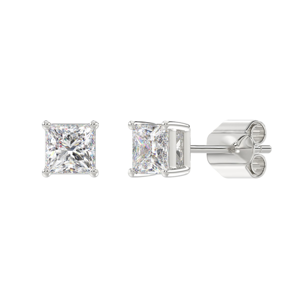 LADIES STUD EARRINGS 0.50CT ROUND/PRINCESS DIAMOND 14K WHITE GOLD