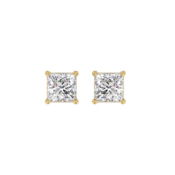 LADIES SOLITAIRE EARRINGS 2CT PRINCESS DIAMOND 14K YELLOW GOLD
