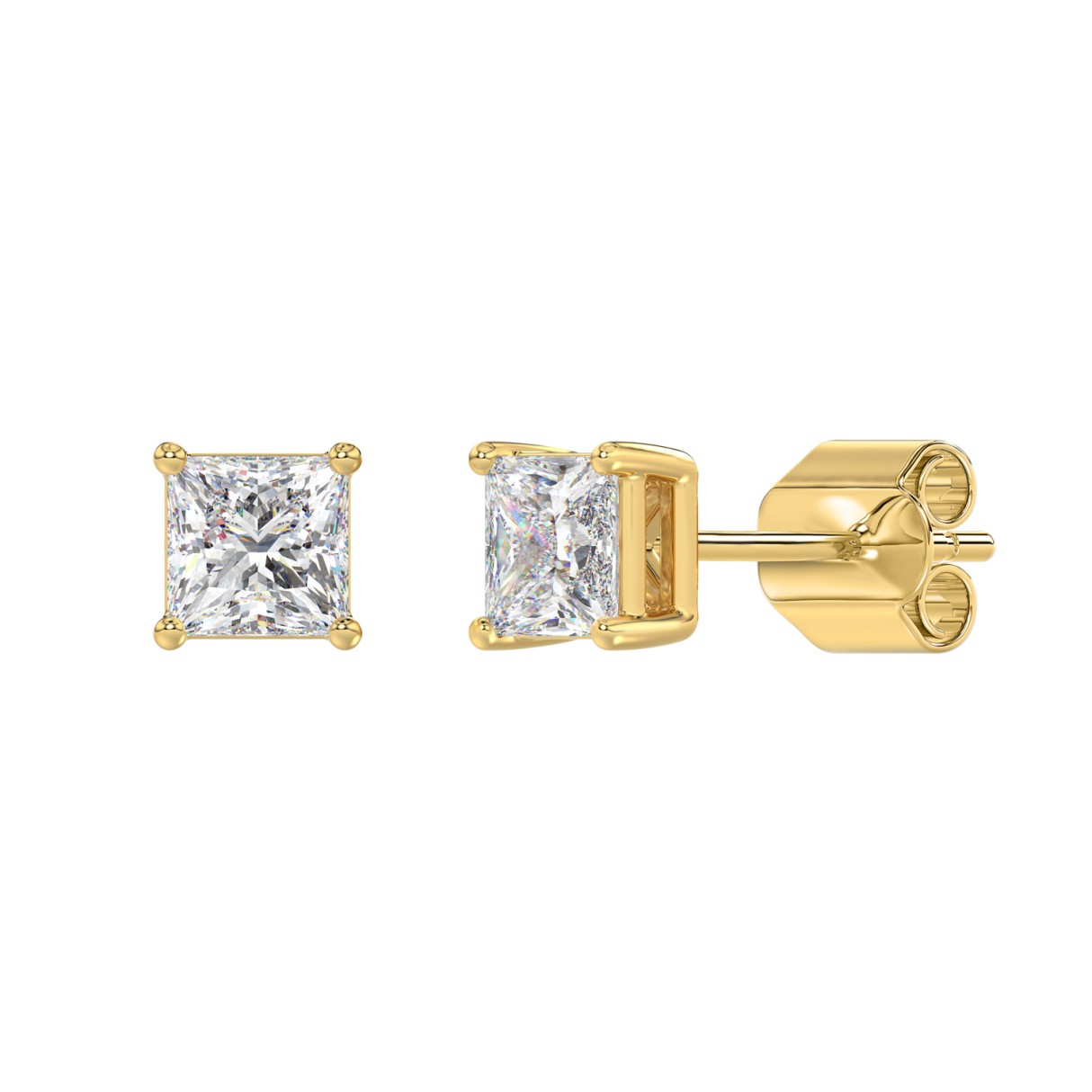 LADIES SOLITAIRE EARRINGS 2CT PRINCESS DIAMOND 14K YELLOW GOLD