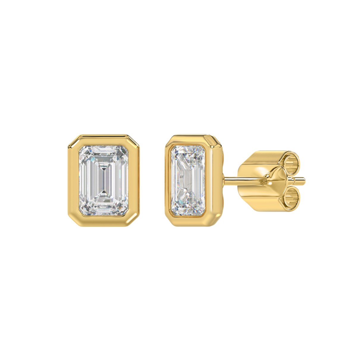 LADIES SOLITAIRE EARRINGS 3CT EMERALD DIAMOND 14K YELLOW GOLD
