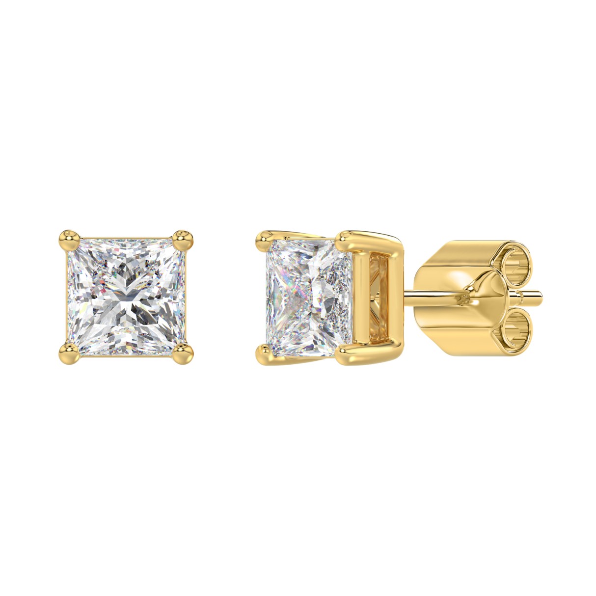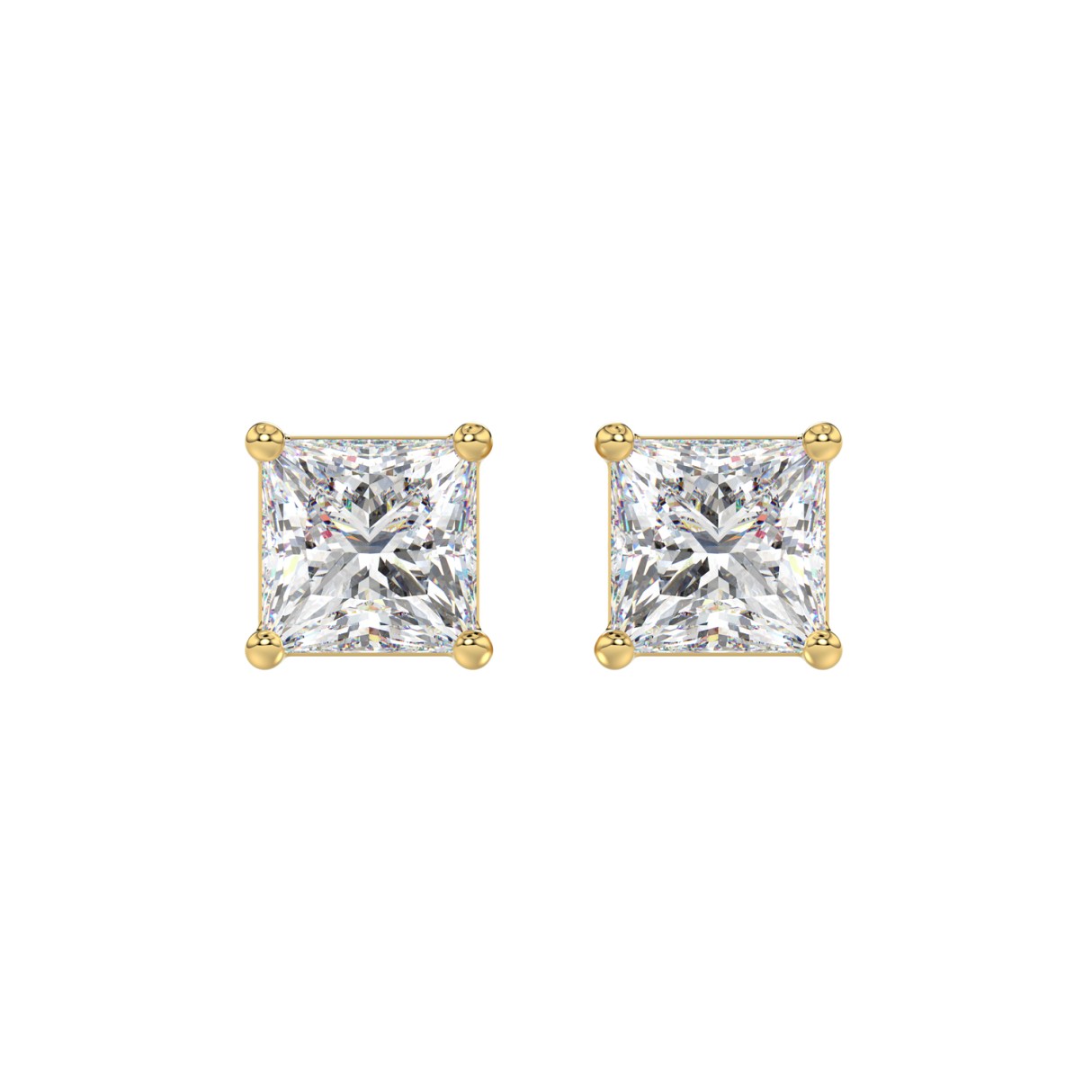 LADIES SOLITAIRE EARRINGS 3CT PRINCESS DIAMOND 14K YELLOW GOLD