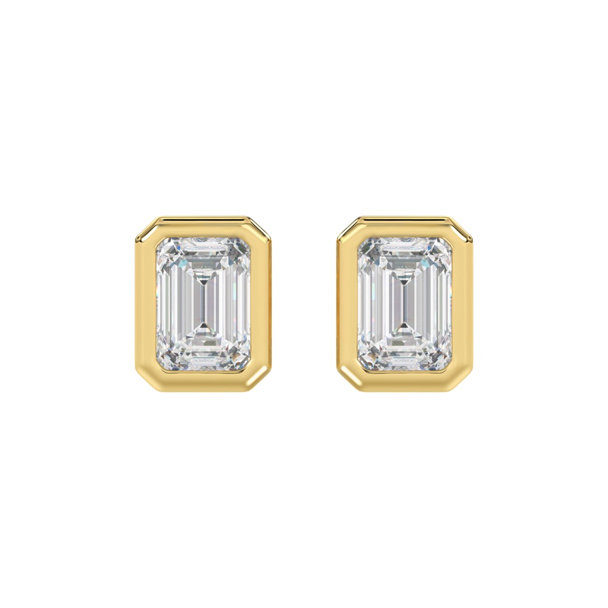 LADIES SOLITAIRE EARRINGS 4.00CT EMERALD DIAMOND 14K YELLOW GOLD
