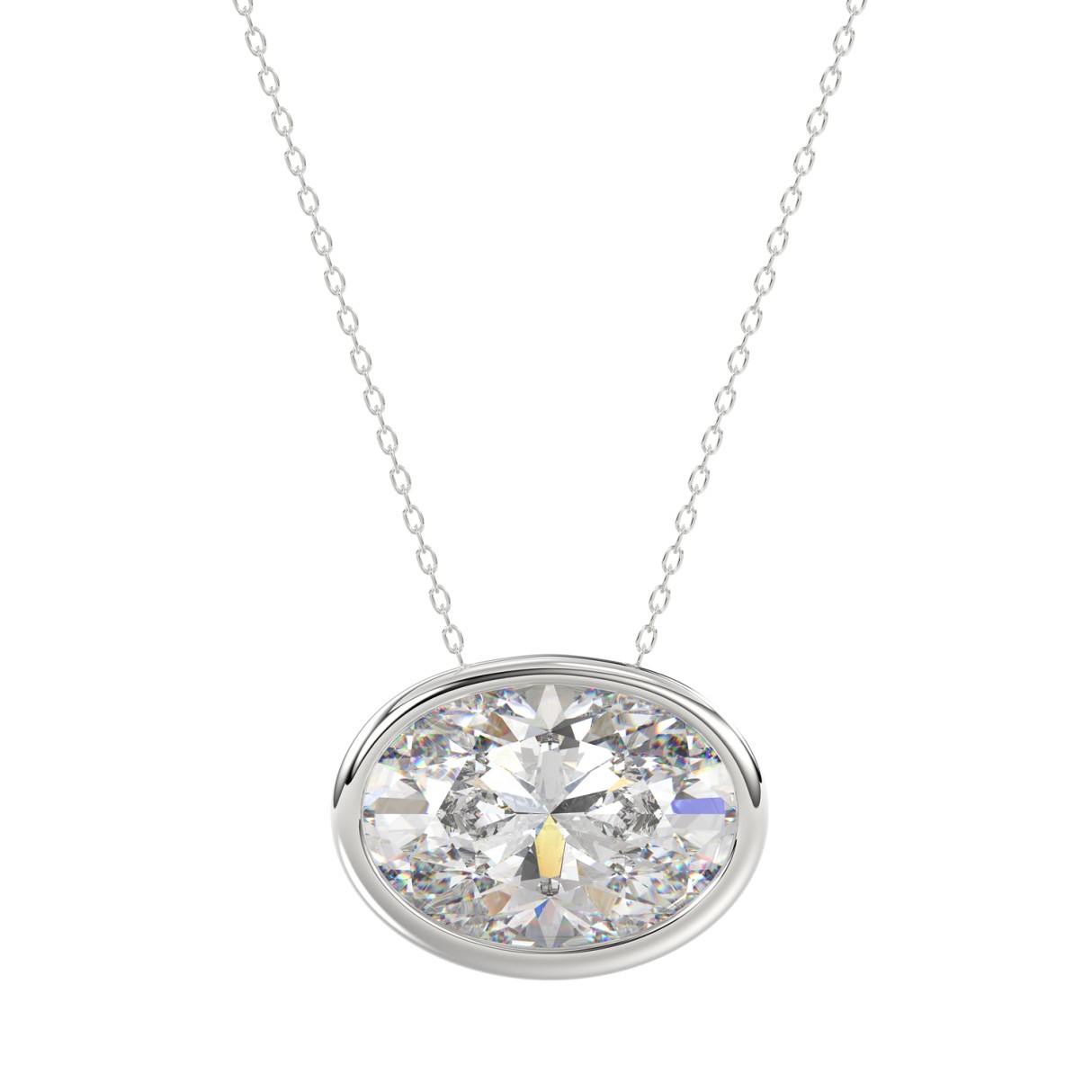 LADIES SOLITAIRE PENDANT 3.00CT OVAL DIAMOND 14K WHITE GOLD