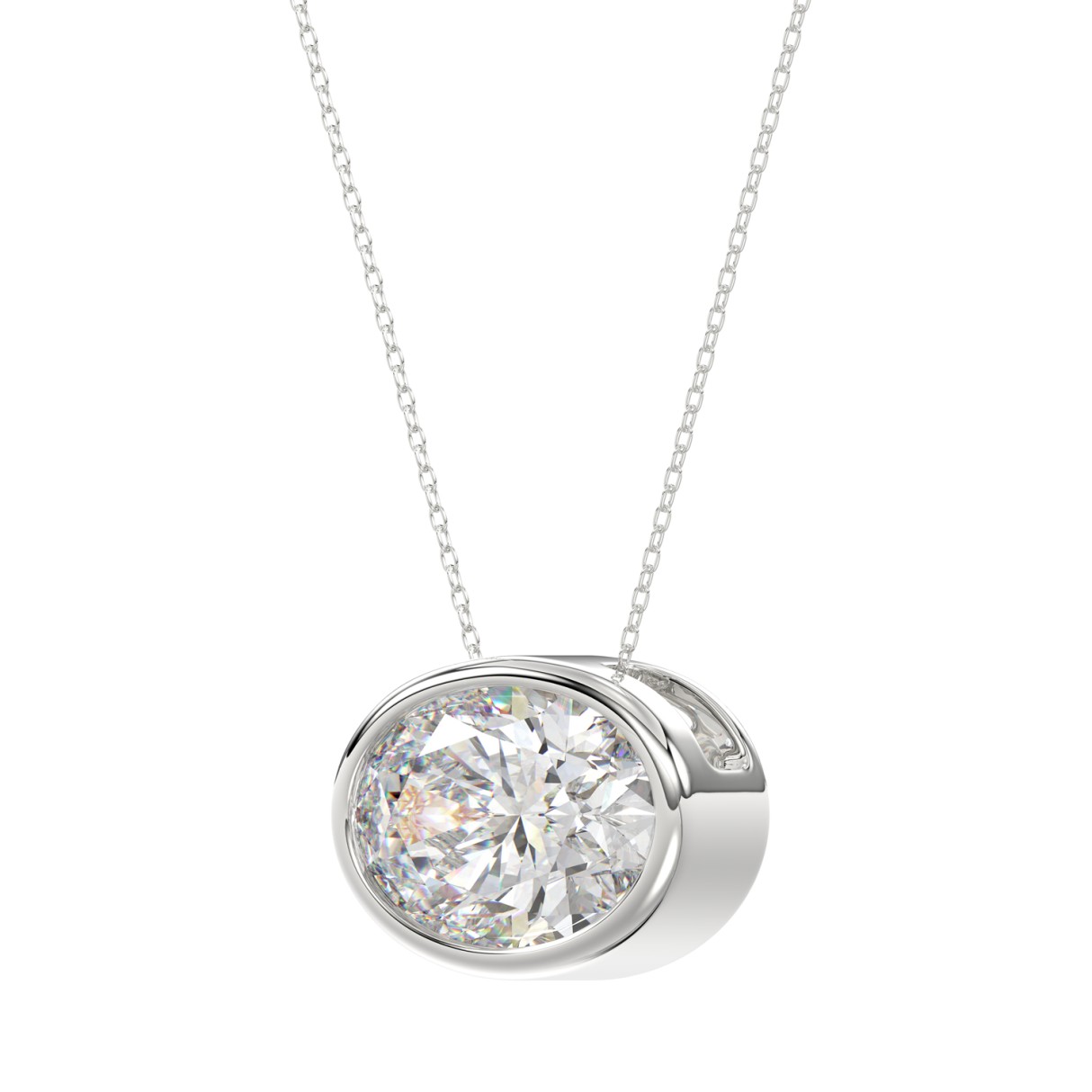 LADIES SOLITAIRE PENDANT 3.00CT OVAL DIAMOND 14K WHITE GOLD