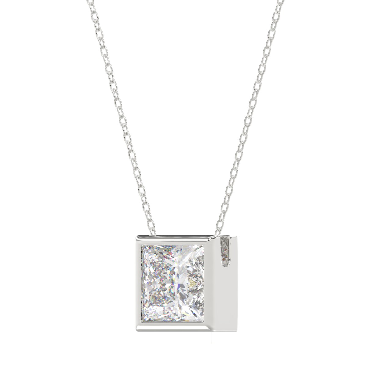 LADIES SOLITAIRE PENDANT 3CT PRINCESS DIAMOND 14K WHITE GOLD