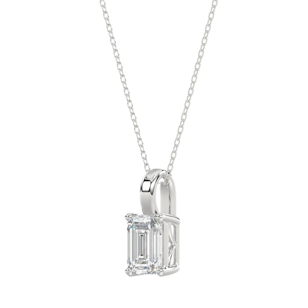 LADIES SOLITAIRE PENDANT WITH CHAIN 1 1/2CT EMERALD DIAMOND 14K WHITE GOLD