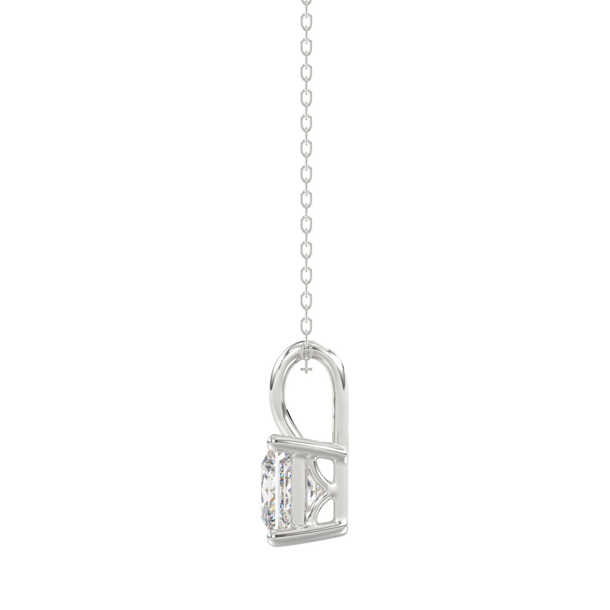 LADIES SOLITAIRE PENDANT WITH CHAIN 1 1/2CT PRINCESS DIAMOND 14K WHITE GOLD