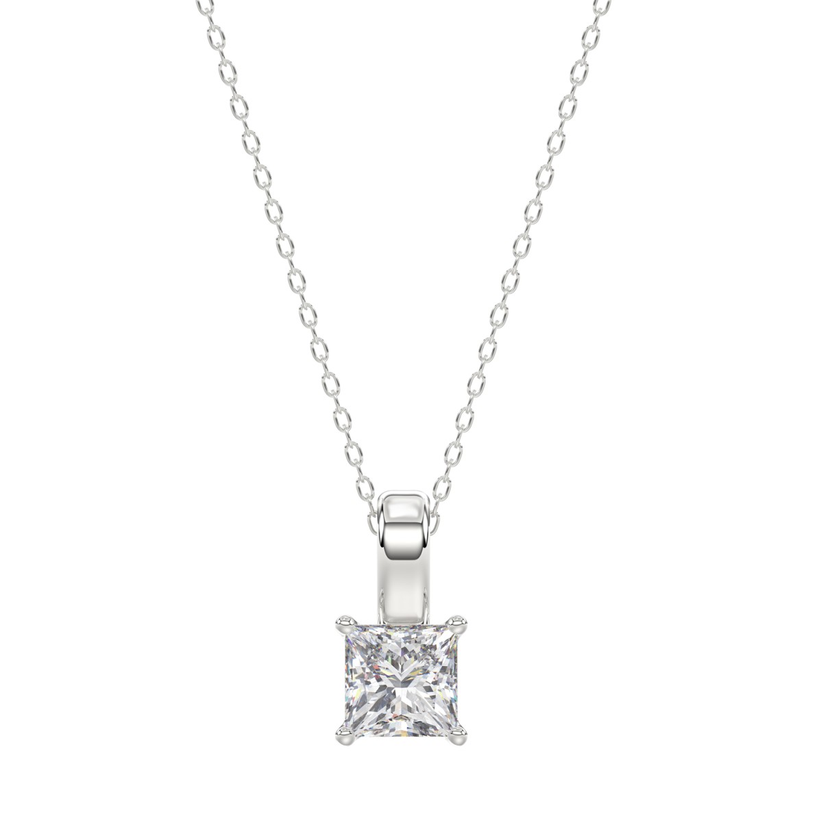 LADIES SOLITAIRE PENDANT WITH CHAIN 1/2CT PRINCESS DIAMOND 18K WHITE GOLD