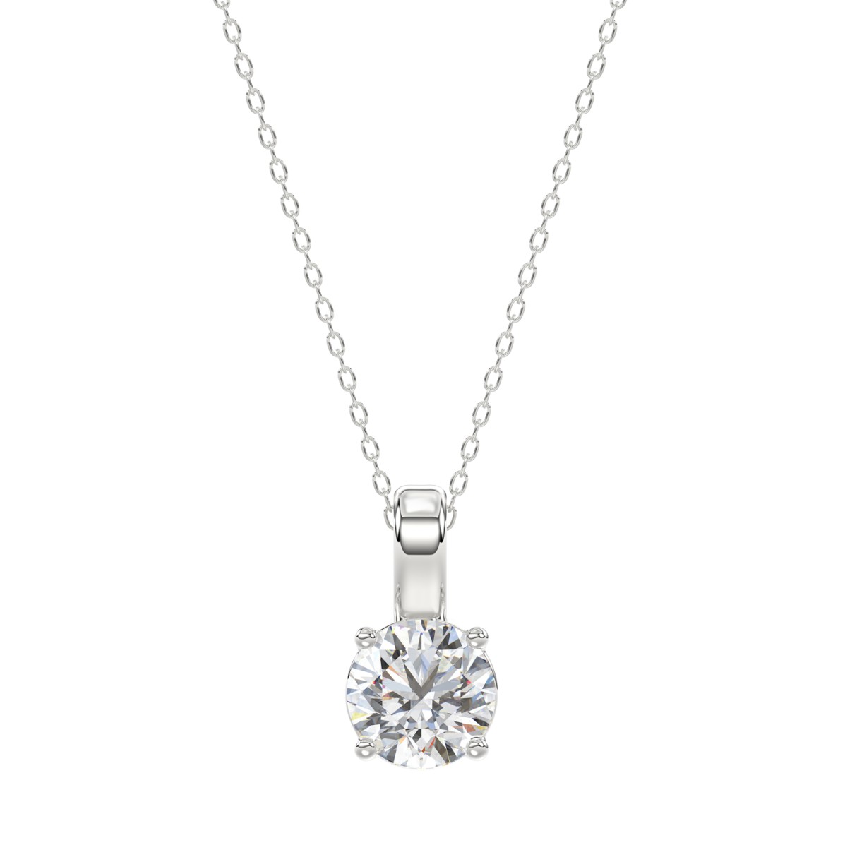 LADIES SOLITAIRE PENDANT WITH CHAIN 1/2CT ROUND DIAMOND 18K WHITE GOLD