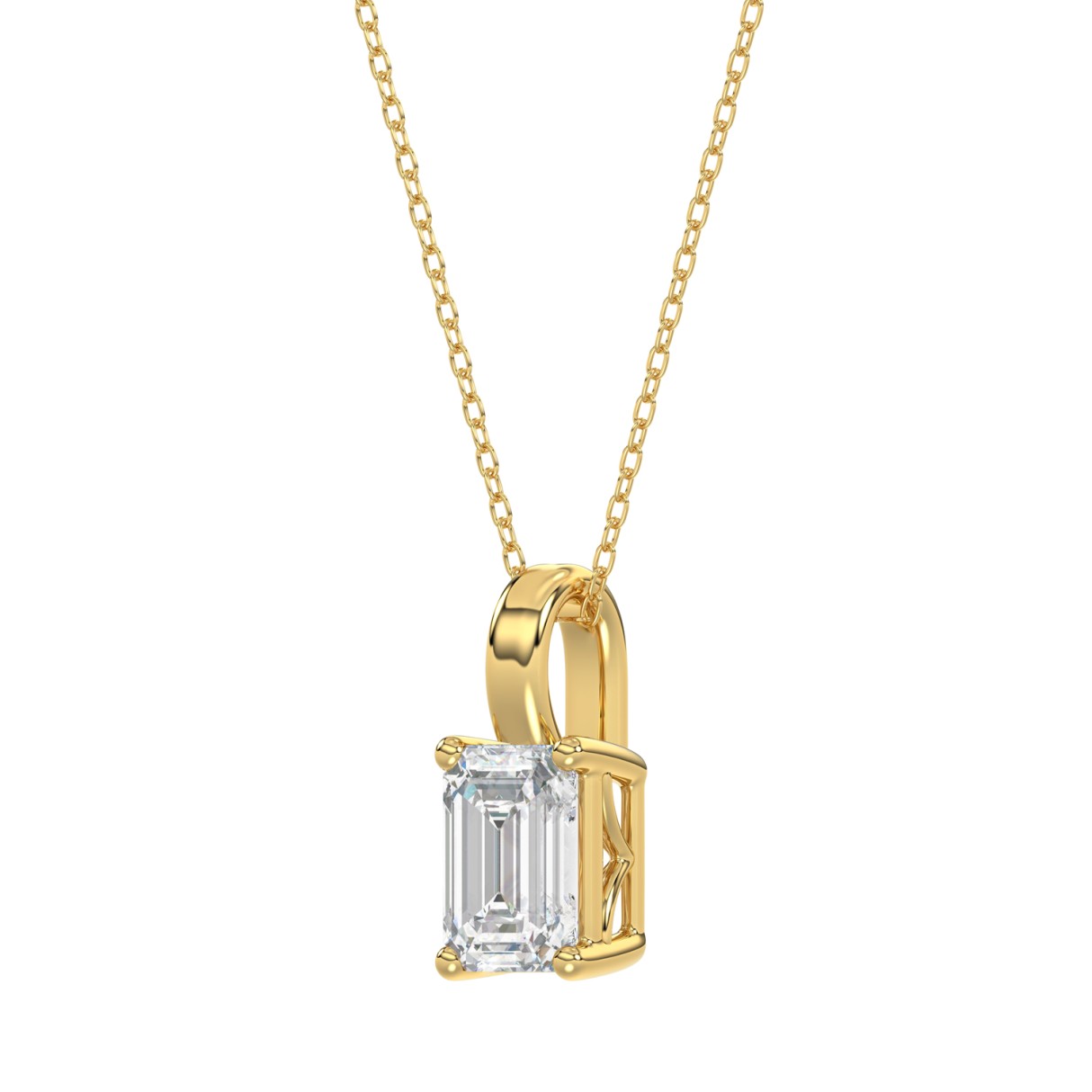 LADIES SOLITAIRE PENDANT WITH CHAIN 2CT EMERALD DIAMOND 14K YELLOW GOLD