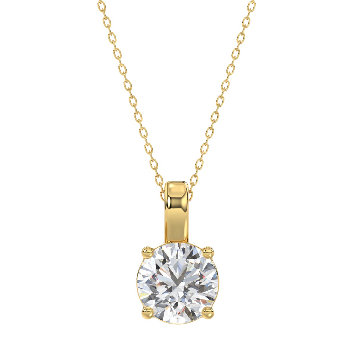 LADIES SOLITAIRE PENDANT WITH CHAIN 2CT ROUND DIAMOND 14K YELLOW GOLD