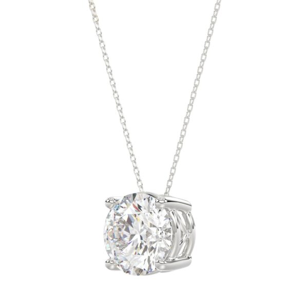 LADIES SOLITAIRE PENDANT WITH UNDER-PASS CHAIN 3CT ROUND DIAMOND 14K WHITE GOLD