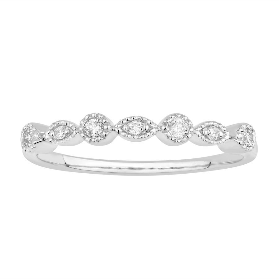 LADIES STACKABLE BAND 0.08CT ROUND DIAMOND 14K WHITE GOLD