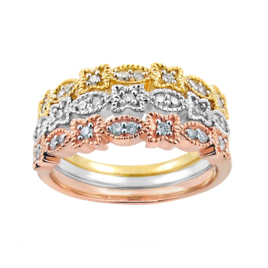 LADIES STACKABLE BAND 0.35CT ROUND DIAMOND 14K WHITE/YELLOW/ROSE GOLD