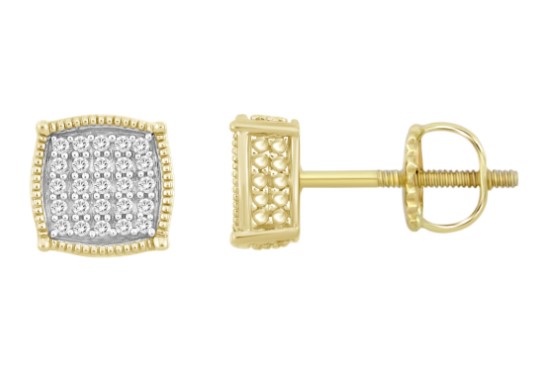LADIES STUD EARRINGS 0.15CT ROUND DIAMOND 10K YELLOW GOLD