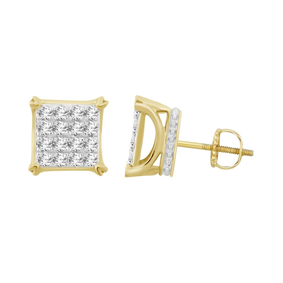 LADIES STUD EARRINGS 0.75CT ROUND DIAMOND 10K YELLOW GOLD