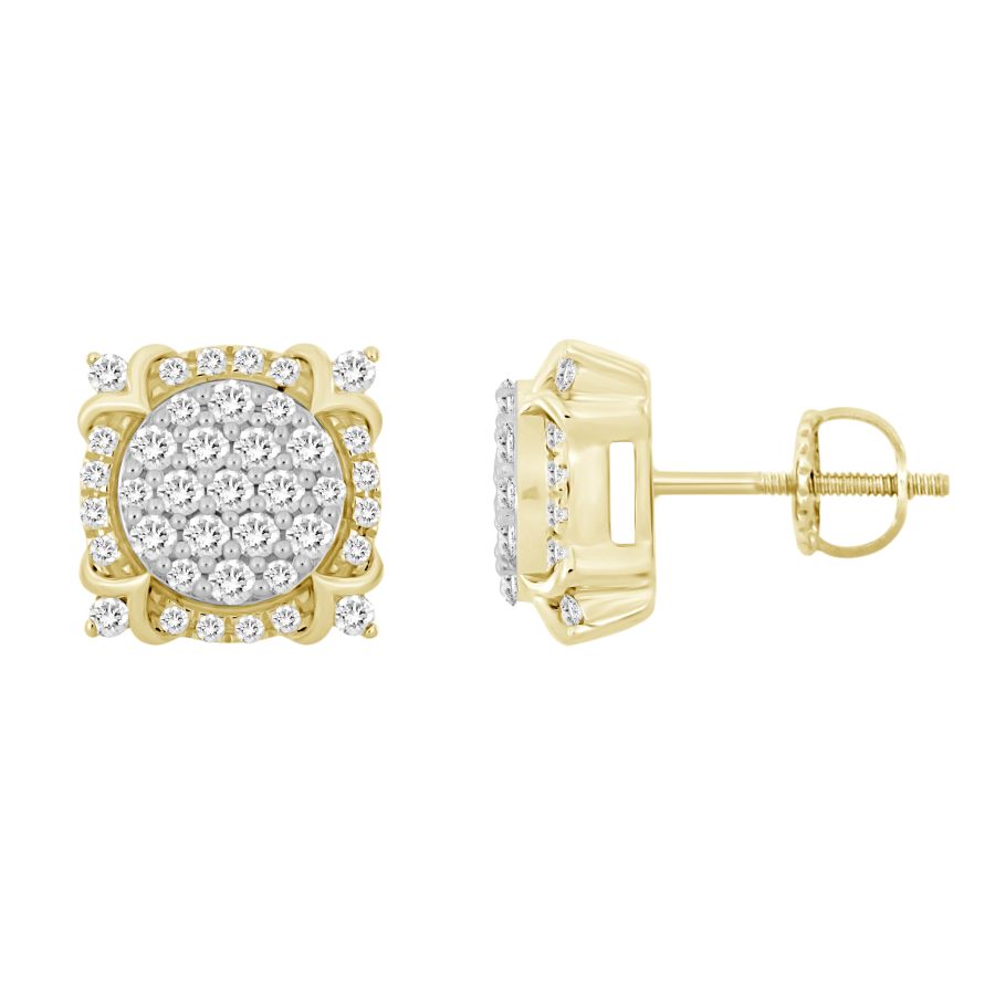 LADIES STUD EARRINGS 1.00CT ROUND DIAMOND 10K YELLOW GOLD
