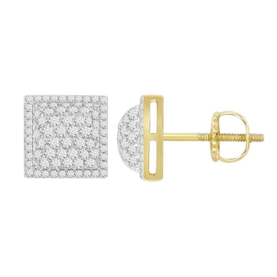 LADIES STUD EARRINGS 1.00CT ROUND DIAMOND 10K YELLOW GOLD