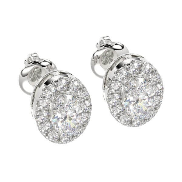 LADIES STUD EARRINGS 1CT OVAL/ROUND DIAMOND 14K WHITE GOLD